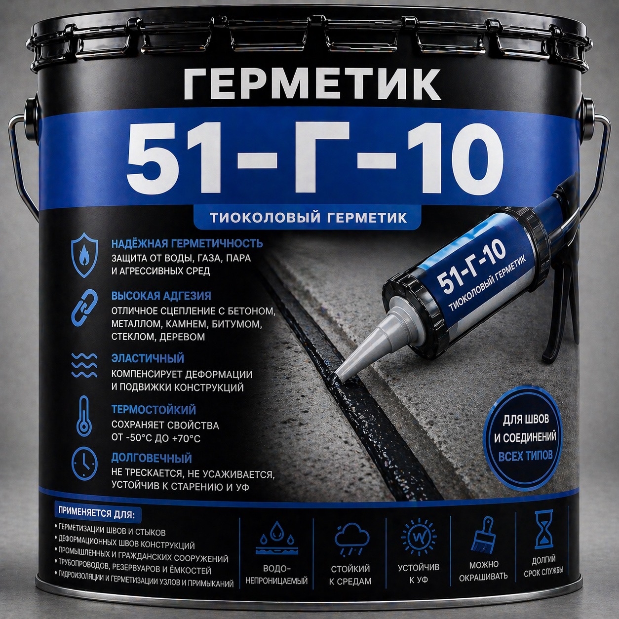 Пластичный раствор поставляется в металлических контейнерах и используется в радио и химической промышленности для защиты аппаратуры от влаги, коррозии, воздействия агрессивных сред (солей, щелочей и кислот). Состав отличается хорошей адгезией с металлом, пластиком, резиной и стеклом. За счет высокой эластичности средство защищает оборудование от механических воздействий: деформаций, стираний, проколов и разрывов. Благодаря высокооднородной текстуре герметик легко наносится с помощью обычных инструментов. Средство безопасно при эксплуатации, поскольку не выделяет токсичных веществ. Несмотря на отличные эксплуатационные характеристики, цена герметика остается доступной.