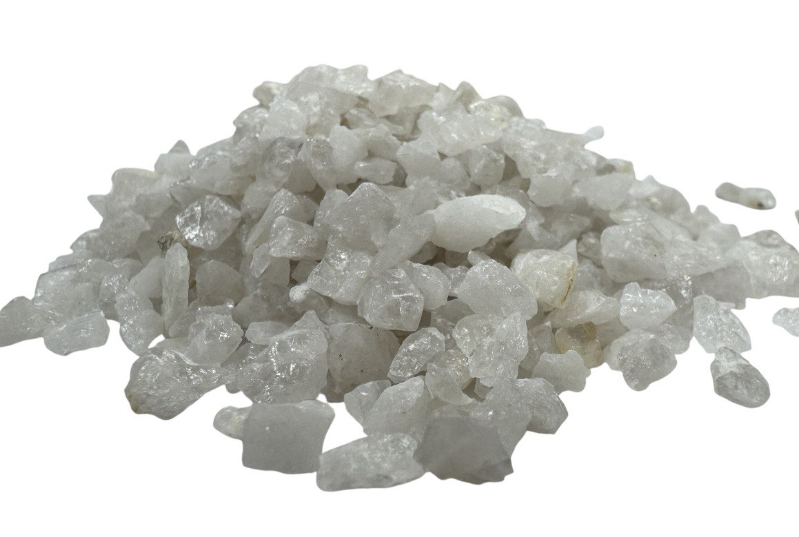 Кварцевый песок фракции 2-5 мм представляет собой гранулы белого цвета. Материал получается в процессе обработки жильной и молочно-белой кварцевой породы. Для производства песка используется высококачественный кварц, добытый исключительно на территории России. При дроблении зернам песка придается неровная колотая форма, что обеспечивает материалу высокие показания абразивности и грязеемкости, прочностные характеристики, устойчивость к истиранию, механическим воздействиям. Далее зерна промываются, высушиваются и разделяются в соответствии с фракциями. Кварцевый песок имеет однородный состав. Содержание диоксида кремния в материале приближается к 98%. Кварцевая порода устойчива к реагентам, температурным перепадам, не боится влаги.