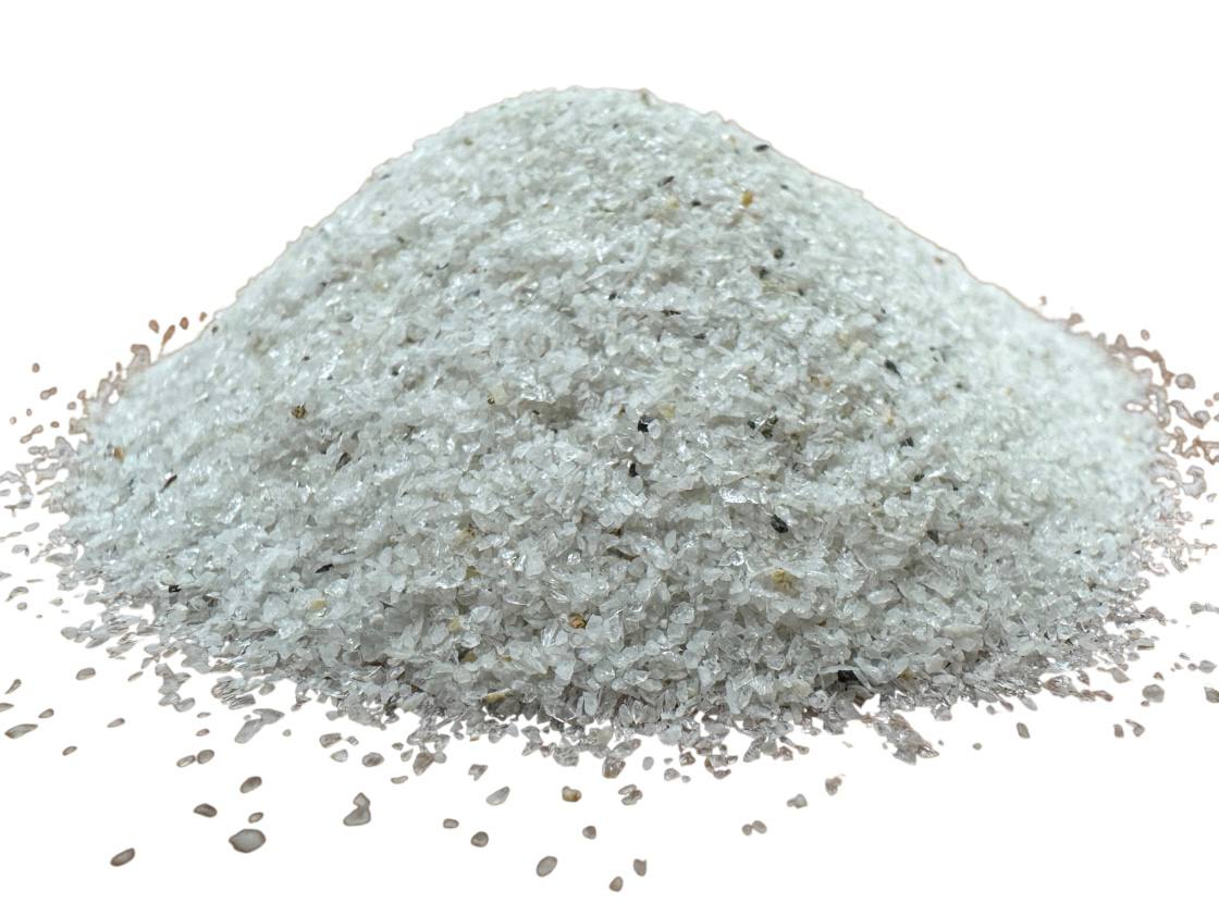 Представляет собой рассыпчатую каменную крошку белого цвета. Не содержит примесей, имеет однородный состав. Кварцевый песок получается путем дробления молочно-белой и жильной кварцевой породы. Каждому зерну придается неровная колотая форма. Таким образом, материал приобретает такие характеристики, как высокая абразивность, стойкость к истиранию, прочность, грязеемкость. Не боится воздействия реагентов, температурных перепадов, повышенной влажности. Содержание диоксида кремния в кварцевом песке достигает порядка 98%.