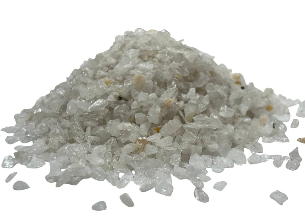 Представляет собой рассыпчатую крошку белого цвета. Цвет, а также число вкраплений может различаться в зависимости от партии. Песок получается в результате специальной обработки жильной и молочно-белой кварцевой породы. В процессе дробления зернам песка придается колотая форма, благодаря чему материал получает высокие показатели абразивности, приобретает дополнительную прочность и устойчивость к истиранию. Содержание диоксида кремния достигает порядка 98%. Коэффициент однородности ― не менее 60%. Материал устойчив к реагентам, не боится повышенной влажности и температурных перепадов. Добавление кварцевого песка в строительные материалы способствует повышению их термостойкости, защищает поверхности от воздействия ультрафиолета.
