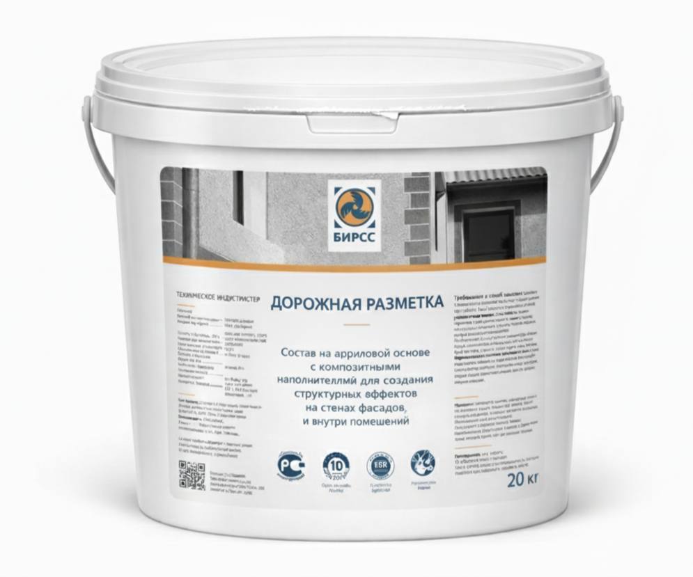 Краска Дорожная разметка БИРСС - состав из полиакрилатных смол на основе акрилового сополимера с добавлением органических растворителей. Краска предназначена для нанесения в качестве контрольно-разметочного покрытия на асфальт и бетон. С ее помощью обозначают линии дорожной разметки автодорог, пешеходных переходов, тротуаров, парковок, бордюров и так далее. Материал готов к применению. Выпускается в белом цвете, матовый. Колеровка производится в контрольные цвета - черный, желтый и оранжевый.