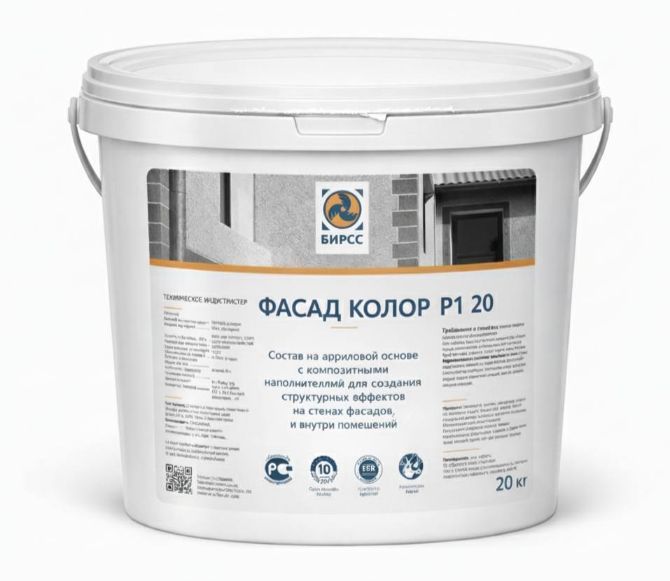Фасад-Колор Р1 (20) БИРСС - декоративная водно-дисперсионная краска, производится на основе акриловой дисперсии с модифицирующими добавками силикона. Используется для финишной покраски фасадов, стен и поверхностей зданий и сооружений, где необходимы повышенные паропропускающие свойства покрытия. Предназначена для поверхностей из подготовленного кирпича и бетона (прошпаклеванных, оштукатуренных). Подходит для наружных и внутренних работ. Выпускается в белом цвете, матовая, однородная по структуре. Возможна колеровка по желанию заказчиков. Состав готов к применению.