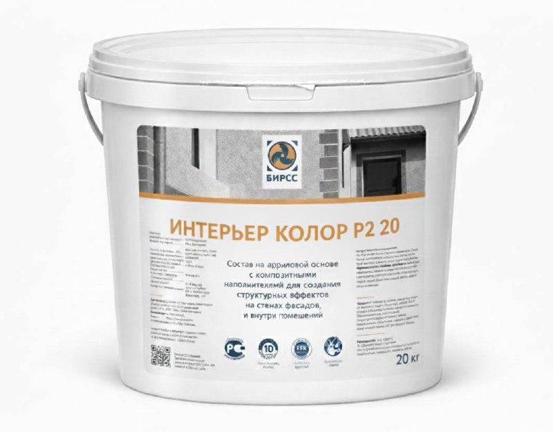 Интерьер-Колор Р2 БИРСС (цвет 2) - декоративная водно-дисперсионная краска для внутренних работ. Производится на основе синтетических дисперсий. Предназначена для внутренних работ в жилых и общественных помещениях. Для сухих помещений. Состав полностью готов к применению. Выпускается в стандартном белом цвете, колеруется под заказ в пастельные тона. Матовая. Рекомендуется к применению на основаниях из бетона, шпаклеванных и оштукатуренных, на стеклообои, ГКЛ и других.