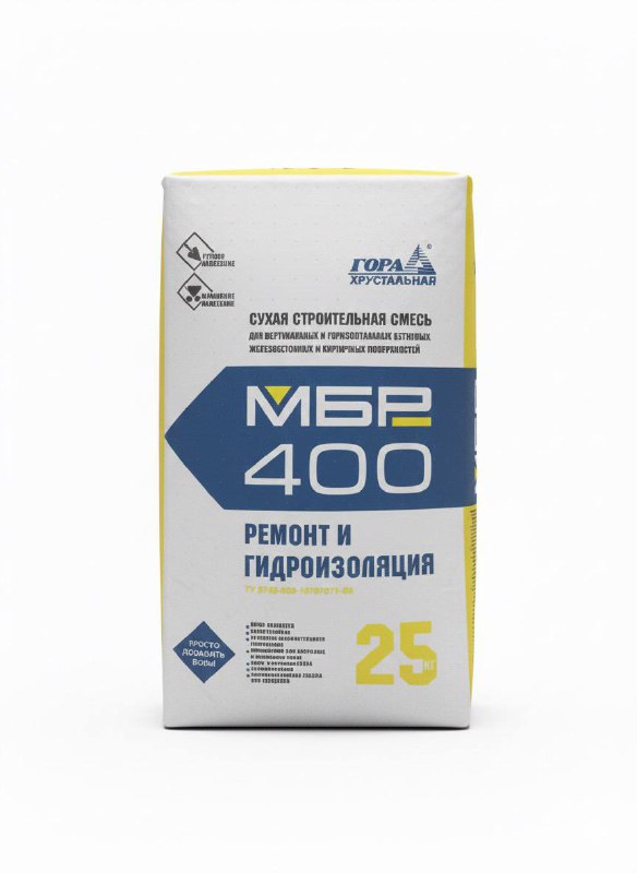 Представляет собой рассыпчатый порошок серого цвета. Состоит из портландцемента, кварцевого песка, полимеров, а также целого ряда минеральных и химических добавок. Для проведения работ при отрицательных температурах существует модификация МБР-400М, содержащая противоморозные компоненты.