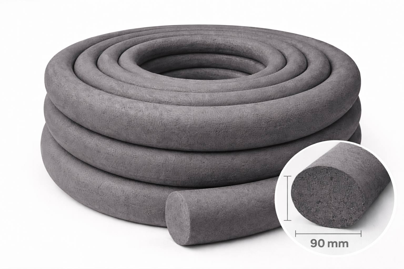 Бентонитовый шнур круглого сечения диаметром 90 мм — это гидроизоляционный саморасширяющийся материал на основе натриевого бентонита, предназначенный для герметизации рабочих и конструктивных швов большой ширины и глубины в бетонных и железобетонных конструкциях. Материал используется в монолитном строительстве и на объектах повышенной ответственности, где требуется максимальная защита от проникновения воды.